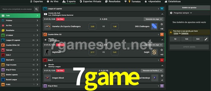 O 7game oferece uma grande seleção de opções de apostas em e-sports com probabilidades competitivas